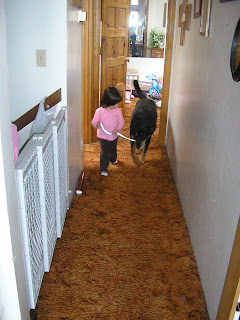I was checking my e-mail and I looked behind me. Mario and Makaila where watching me. When he looked up she looked up when he put his head down she put her head down